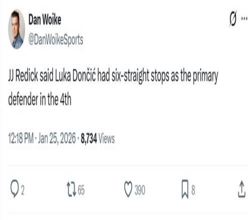 赛后湖人主帅雷迪克专门称赞了东契奇在防守上的改变:“卢卡末节作为主要防守人,连续6个回合防下了对手的进攻。”